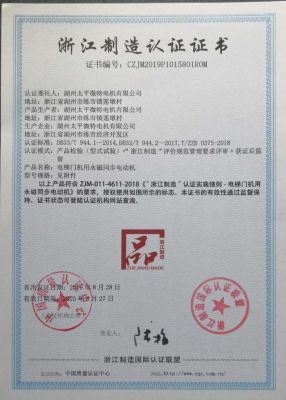 8月初,我司顺利通过“浙江制造”现场审核,并于今日正式拿到“浙江制造”认证证书。